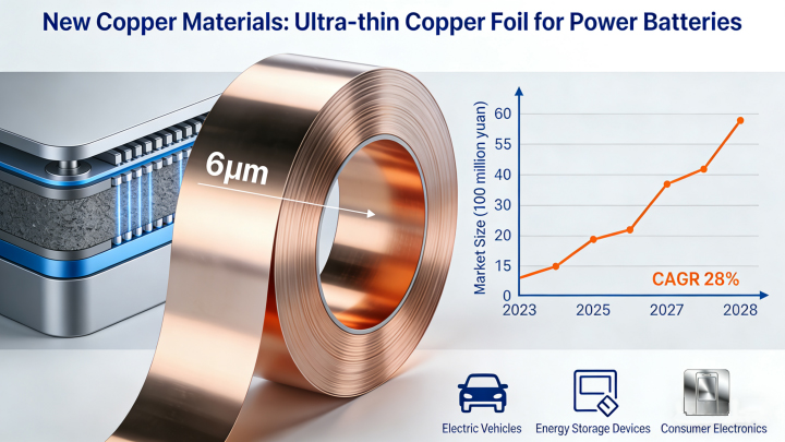 ภาคพลังงานใหม่ได้กลายเป็นตัวขับเคลื่อนการเติบโตใหม่ การพัฒนาอย่างรวดเร็วของยานพาหนะพลังงานใหม่และแบตเตอรี่ลิเธียมได้กระตุ้นความต้องการวัสดุทองแดงระดับไฮเอนด์ ในปี 2024 ผลผลิตรถยนต์พลังงานใหม่ในประเทศจีนเพิ่มขึ้น 37.4% เมื่อเทียบเป็นรายปี ซึ่งผลักดันความต้องการวัสดุทองแดงที่เกี่ยวข้องโดยตรง บริษัทต่างๆ เช่น Botong New Material ประสบความสำเร็จในการพัฒนาฟอยล์ทองแดงสำหรับแบตเตอรี่ลิเธียมความแข็งแรงสูง 4.5 ไมครอน ซึ่งเข้าสู่ห่วงโซ่อุปทานของแป้งชั้นนำ