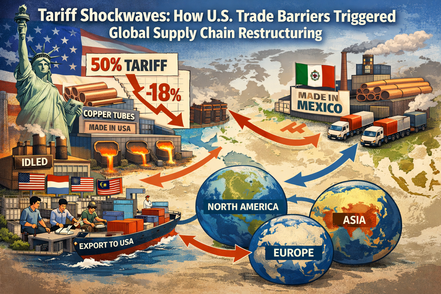 Subtitle: When the U.S. imposed 50% tariffs on copper tubes triggered a global trade chain restructuring, how did production capacity in Southeast Asia and Mexico surge by 46.3% within a year? This policy-driven supply chain migration is redrawing the global value distribution map for copper tubes.