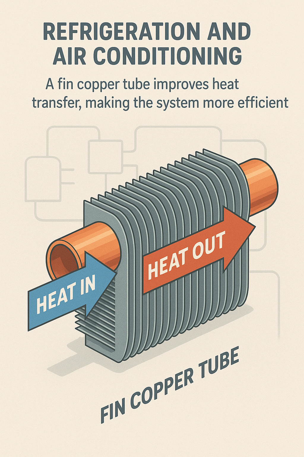 ในระบบปรับอากาศ Fin Copper Tubes ถูกนำมาใช้กันอย่างแพร่หลายในคอยล์เย็นและคอนเดนเซอร์ เครื่องระเหยจะดูดซับความร้อนจากอากาศภายในอาคาร ในขณะที่คอนเดนเซอร์จะปล่อยความร้อนออกสู่สิ่งแวดล้อมภายนอก การใช้ท่อทองแดงแบบครีบในส่วนประกอบทั้งสองนี้ช่วยเพิ่มประสิทธิภาพการถ่ายเทความร้อนโดยรวม ซึ่งนำไปสู่ประสิทธิภาพการทำความเย็นที่ดีขึ้นและการใช้พลังงานที่ลดลง